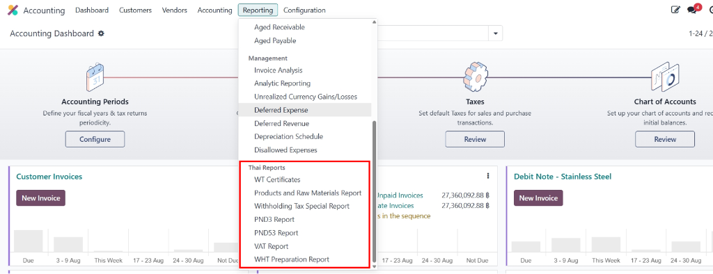 Odoo Thai Accounting Reports Menu - WT Certificates, PND3, PND53, VAT, WHT Preparation